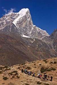 Over the past years mid-career business executives, many of them graduates from various Wharton programs, have trekked to Mount Everest in an unusual seminar designed to continue their leadership and teamwork development. The trekking route takes them through Sherpa villages and Buddhist monasteries to the summit of an 18,000-foot peak beneath the two-mile high ice face of Nuptse and Lhotse next to Everest itself.